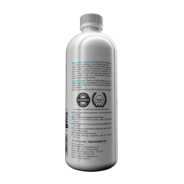 MAXN Liquid L-Carnitine provides all the benefits of L-Carnitine in a delicious, concentrated liquid form. L-Carnitine is a safe and effective nutrient that is essential to the process of proper fat metabolism in muscle and other tissue. The primary function of L-Carnitine in the body is to facilitate the transport and metabolism of long-chain fatty acids into mitochondria for beta-oxidation and energy generation.